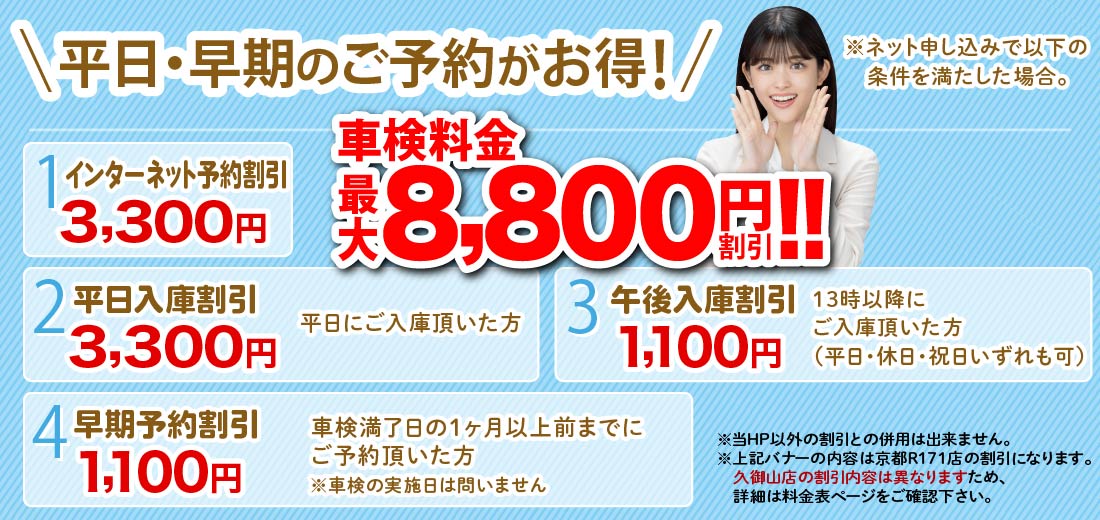 下記、他店でよくある最安値料金に適用されている割引となります。