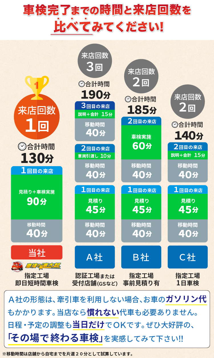 長年積み重ねてきた経験やノウハウによって、以前のように車検は何日も