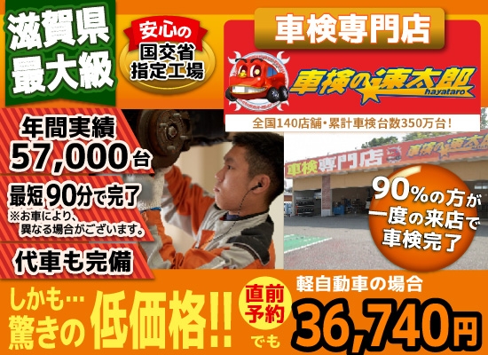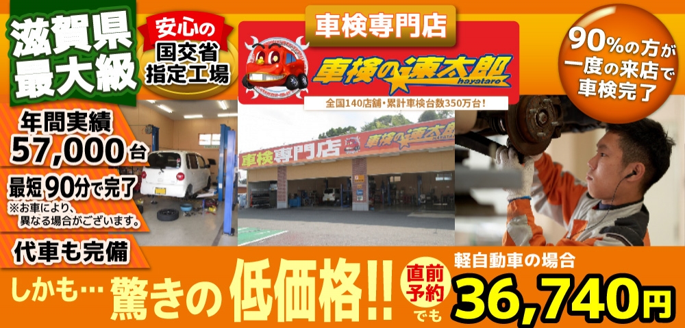 大津 栗東 彦根 草津 長浜で車検3.6万!年5万台!